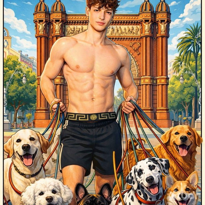 PASEADOR DE THERIANS conectado a la energía salvaje y leal, cuerpo atlético activo, espíritu libre, vibra dominante y natural, conexión animal real