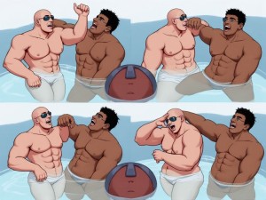Un grupo de hombres adultos, todos amigos del novio, se encuentran en una despedida de soltero exclusivamente masculina, rodeados de una atmósfera de diversión y excesos. El novio, visiblemente borracho, yace totalmente desnudo en el suelo, en situación vulnerable. Sus amigos, riendo a carcajadas, se burlan de él, disfrutando de su momento de humillación, algunos de los amigos comienzan a orinar sobre el cuerpo del novio, quien, debido a su estado de ebriedad, apenas puede reaccionar o protestar por el trato que recibe.